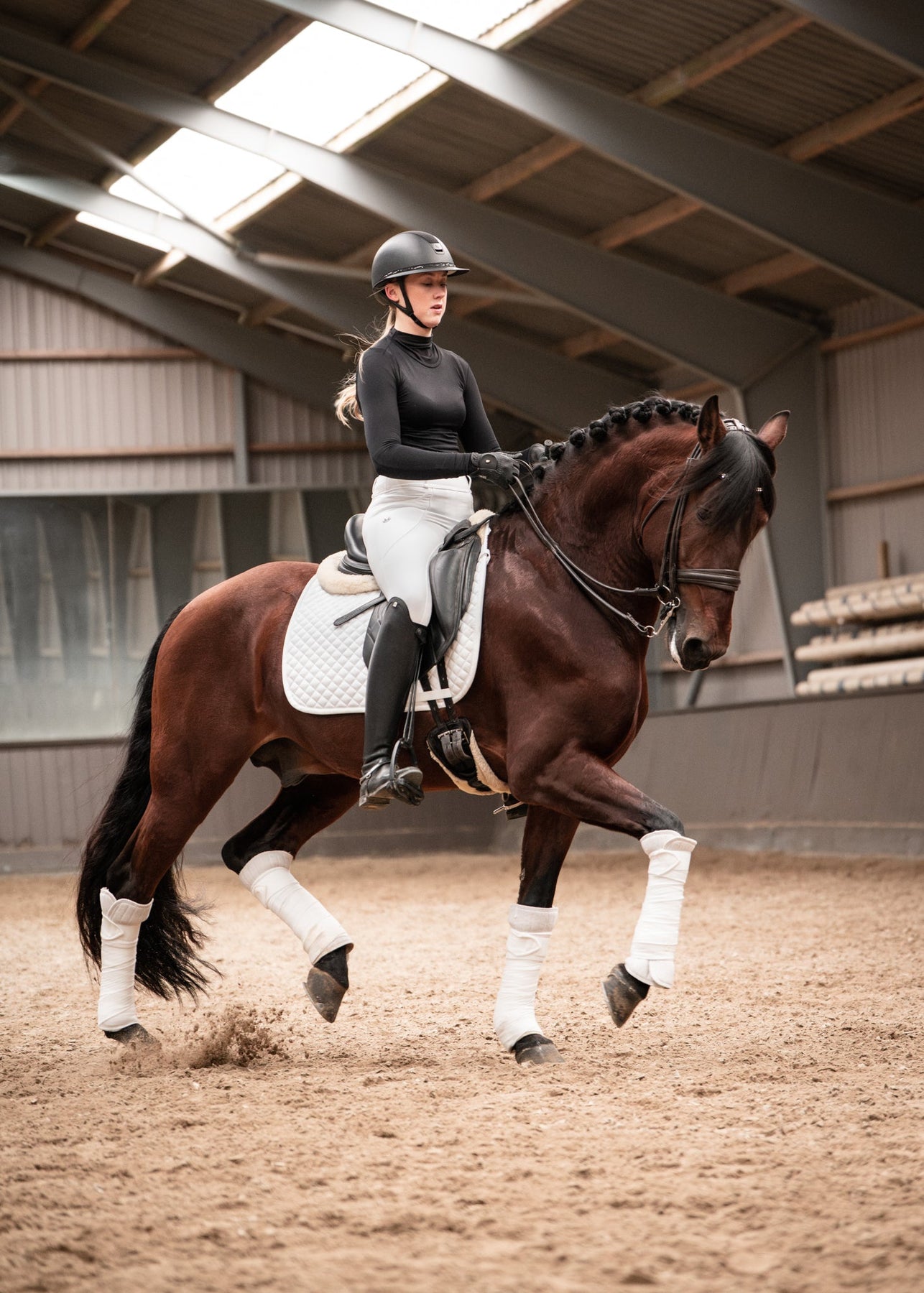 Kombinerer stil med funktionalitet og en kompressionseffekt, som støtter musklerne og sikrer en tæt og behagelig pasform. De er designet til rytteren, der ønsker optimal komfort og ydeevne.